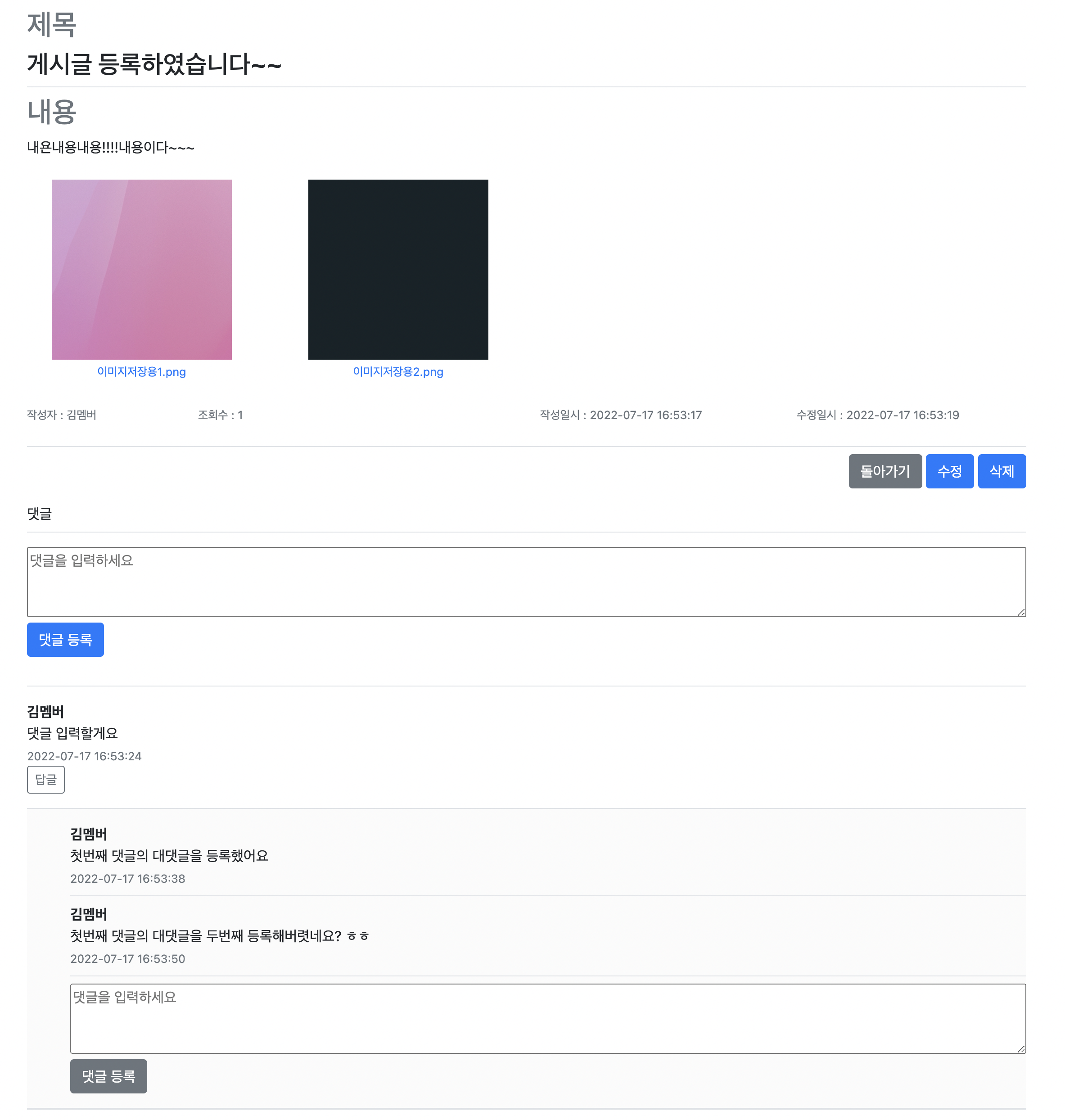 댓글과 대댓글은 셀프조인 되어있는 구조