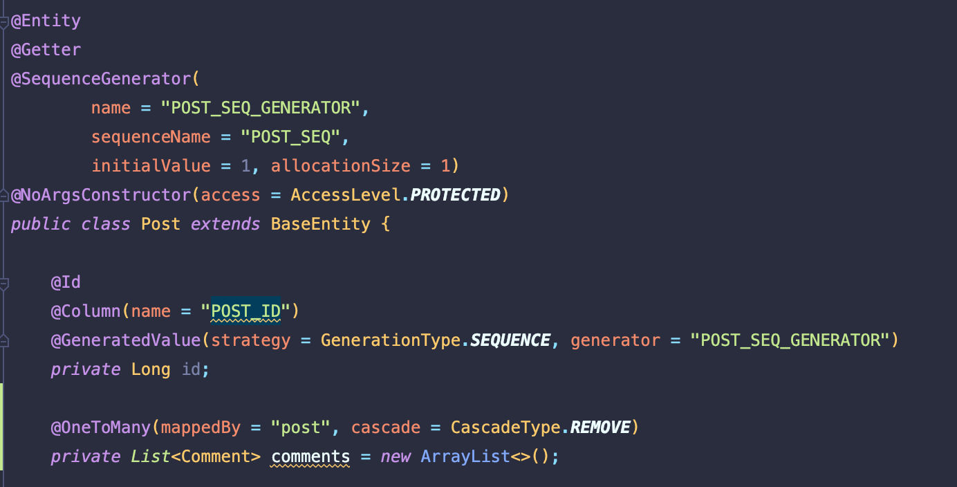 사용 방법은 부모 테이블인 Post 에서 @OneToMany의 옵션으로 CASCADE 옵션을 적어준다. (양방향 관계)