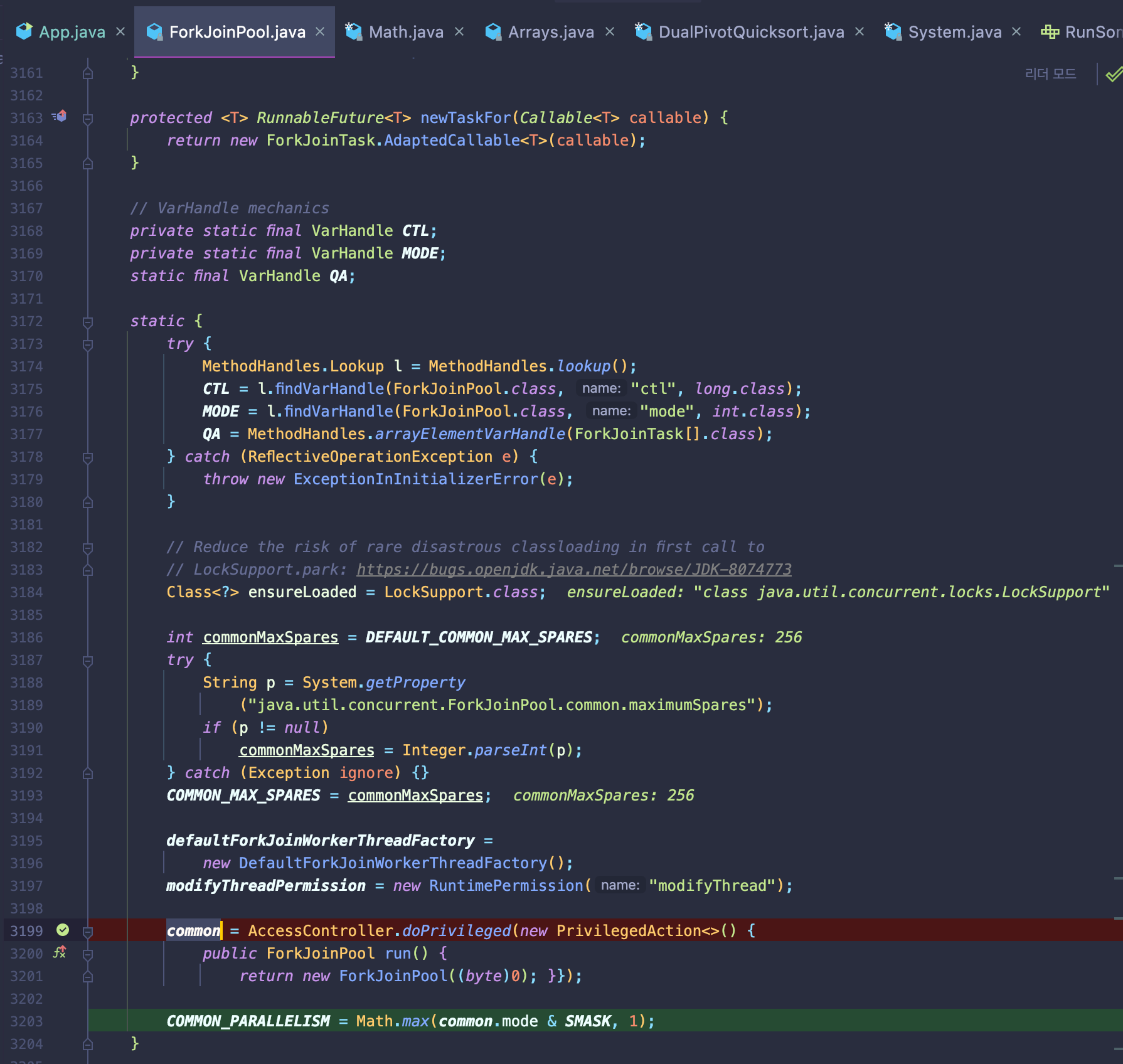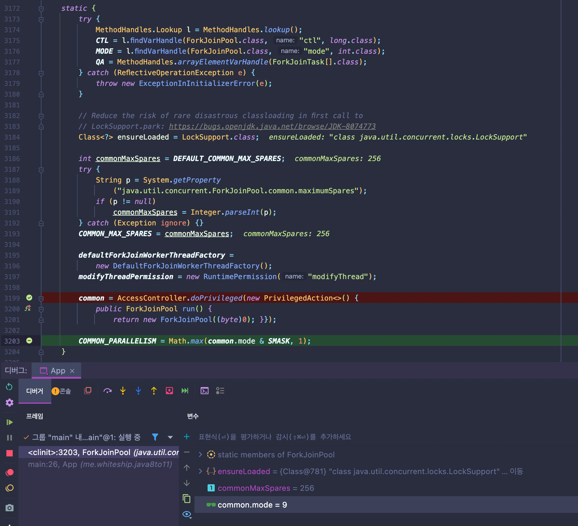 따라서 저 스태틱 블록 안의 것들이 실행될 때 common 변수값과 COMMON_PARALLELISM 변수값이 초기화된다.
