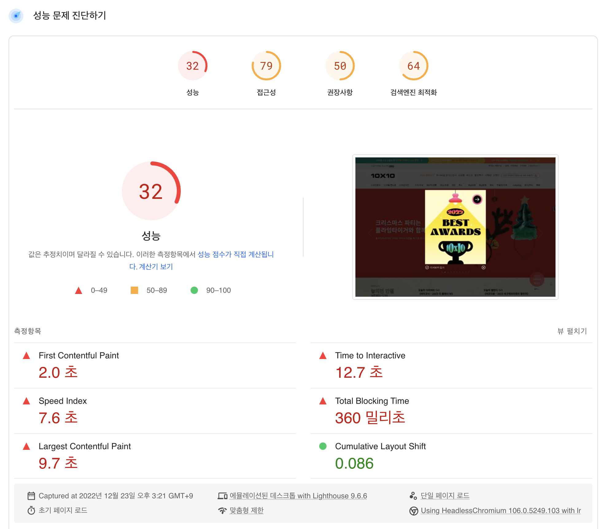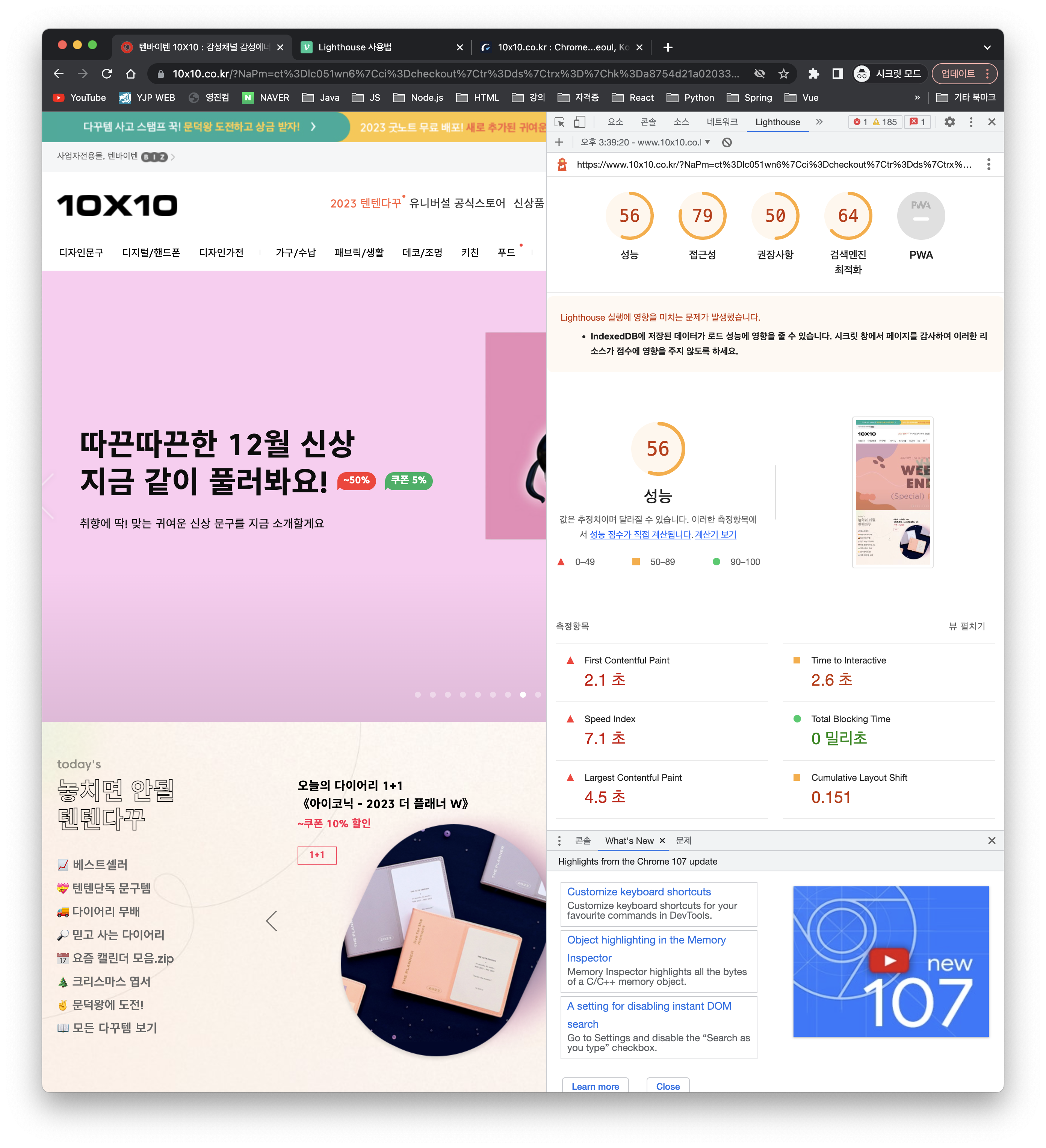 실제로 좋아하는 웹사이트인 텐바이텐의 성능점수를 확인해보자