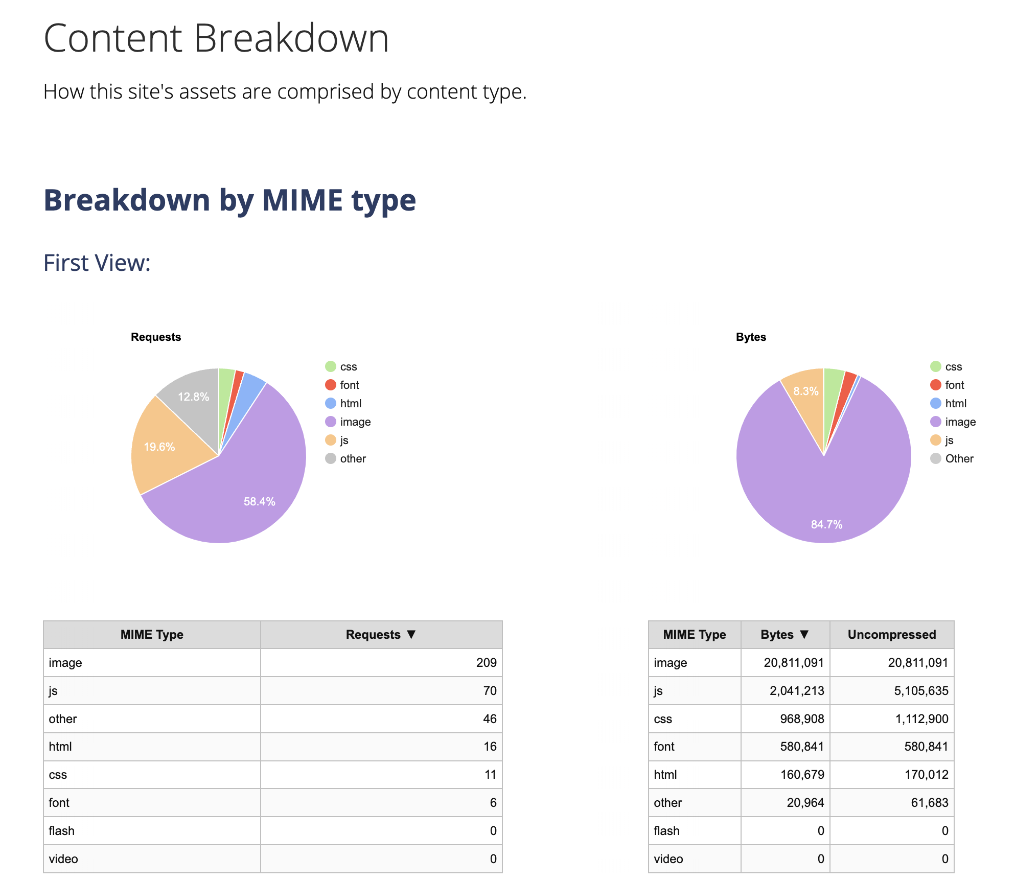 위 예시와 같이 웹 성능을 측정해보면 사이트를 로딩할 때 프론트엔드에서 가장 많은 시간을 소요합니다. 웹 서버가 콘텐츠를 생산하는 시간보다 사용자가 콘텐츠를 렌더링하는 데 시간이 더 소요되기 때문에 프론트엔드가 웹 성능에 많은 영향을 끼칩니다. 하지만 프론트엔드 최적화 기술은 사용자 환경에 따라 매우 다릅니다.