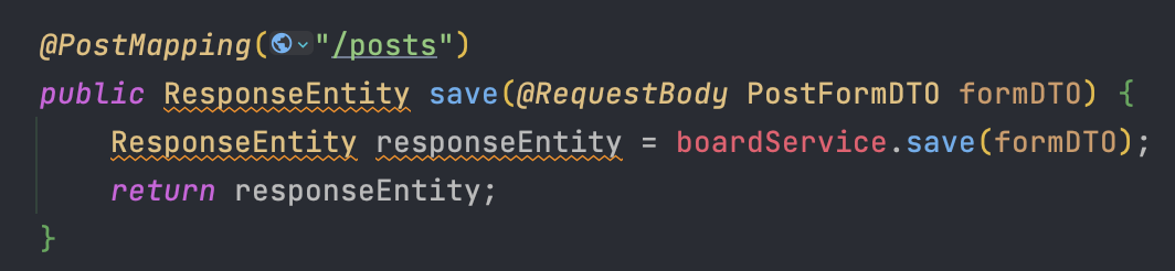 그리고 해당 경로는 "/api/posts" 이기 때문에 이 메서드를 살펴보면 된다.