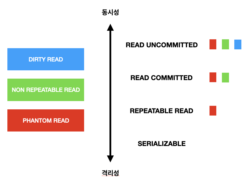 - 밑으로 갈수록 동시성이 약해지지만 격리성은 강해짐