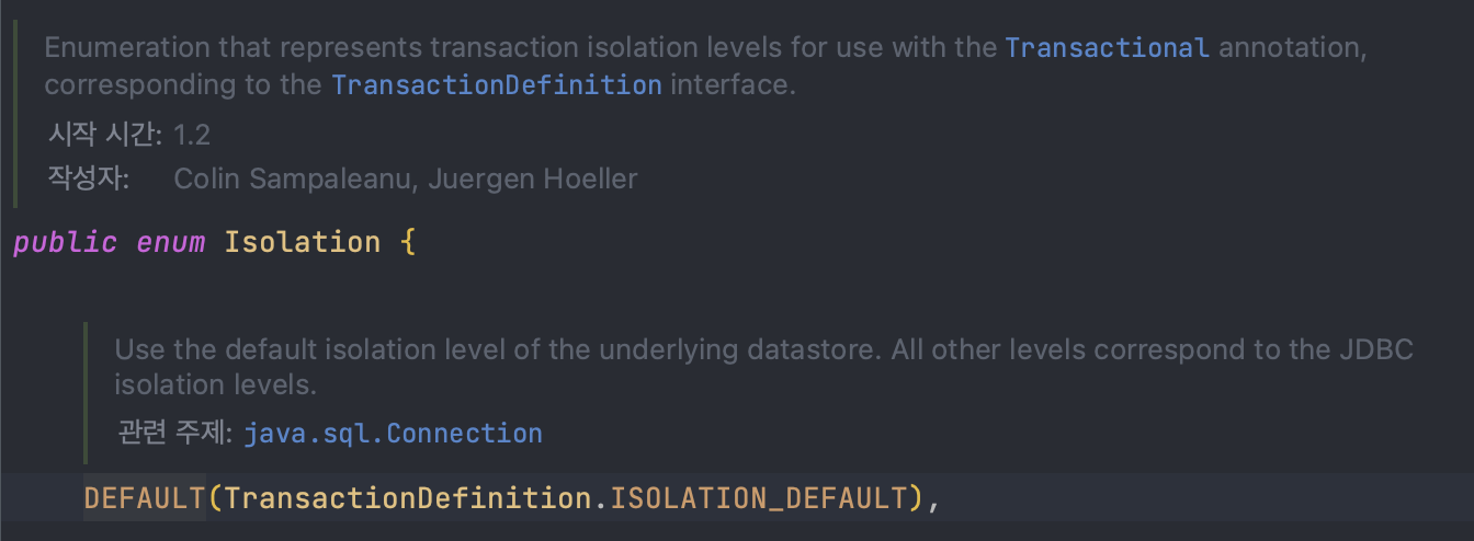 그렇다면 Isolation.DEFAULT란 무엇일까?