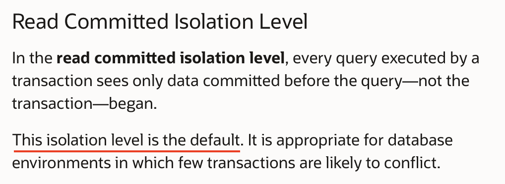 🚀 Oracle default isolation level