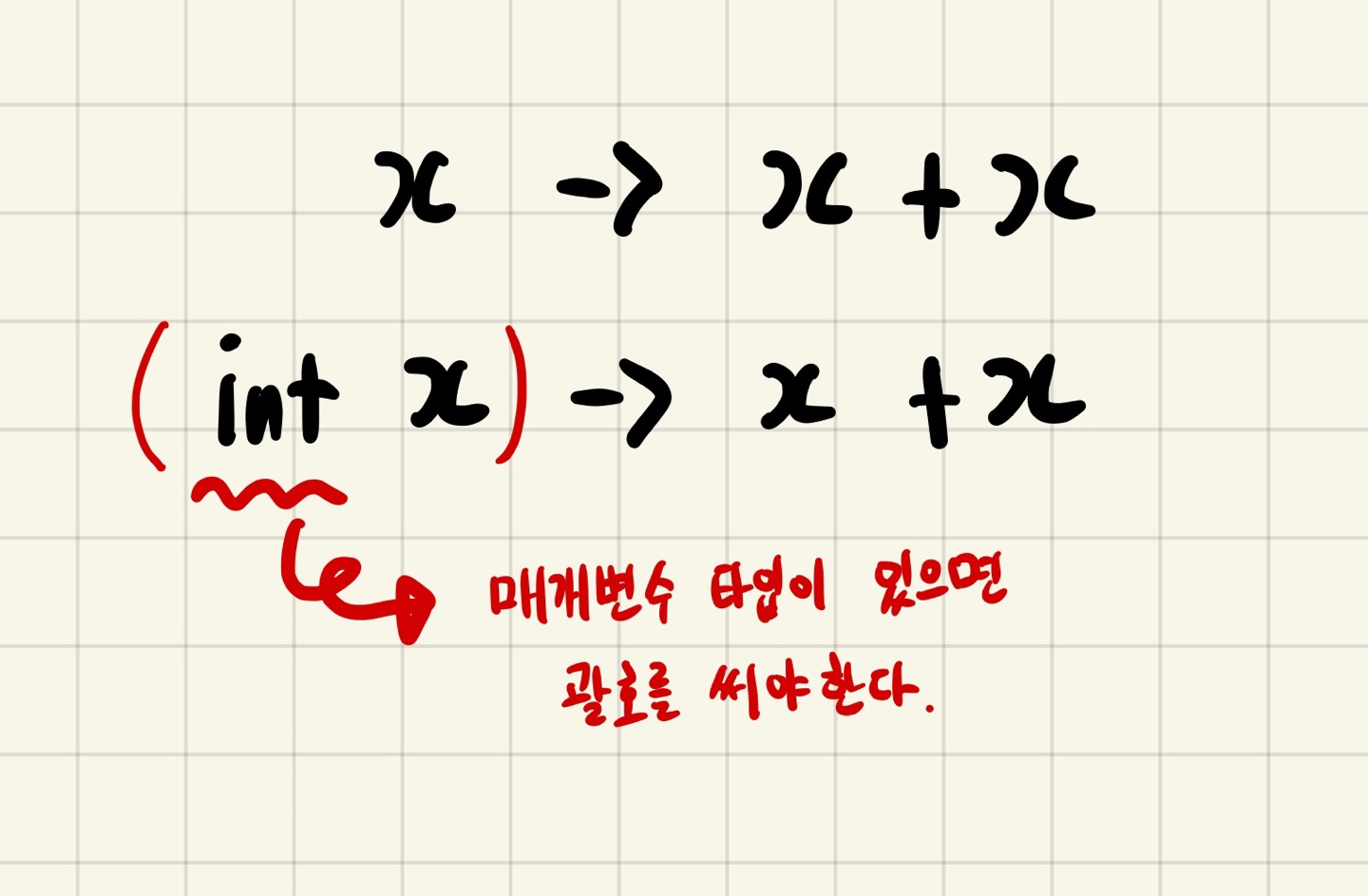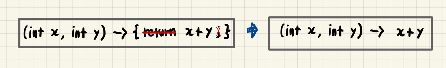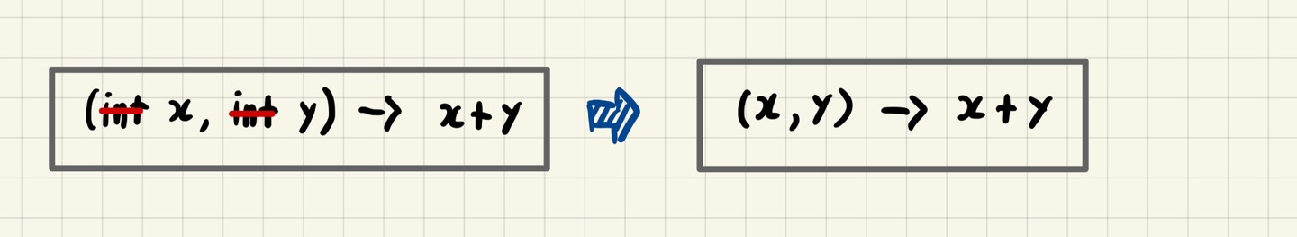 타입 f = (int x, int y) -> x + y;