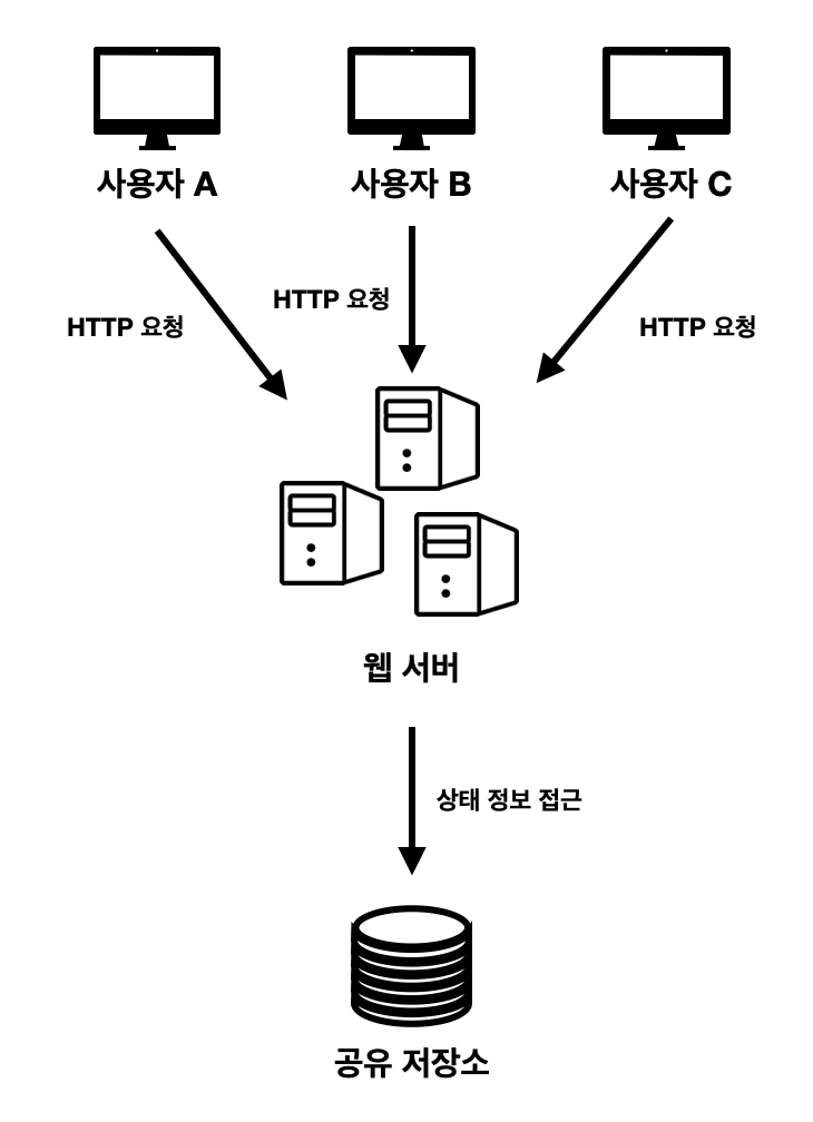- 상태 정보가 웹 서버들로부터 제거