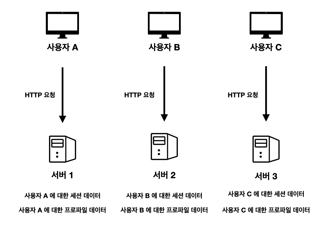 - 즉, 사용자 A가 서버 2에 요청하면 새로 로그인을 해야 함