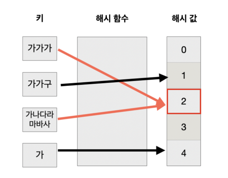 - 서로 다른 입력값에도 동일한 값이 출력되는 경우가 있음 (해시 충돌, Hash Collision)