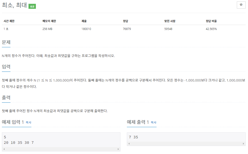 입력받는 정수의 범위는 -1,000,000 이상 1,000,000 이하이므로 거기에 맞춰서 최댓값과 최솟값을 설정하였고,