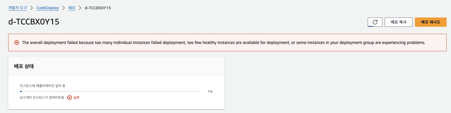 이 때 실패한 배포의 문제를 해결하려면 이 링크를 참조하면 됨.