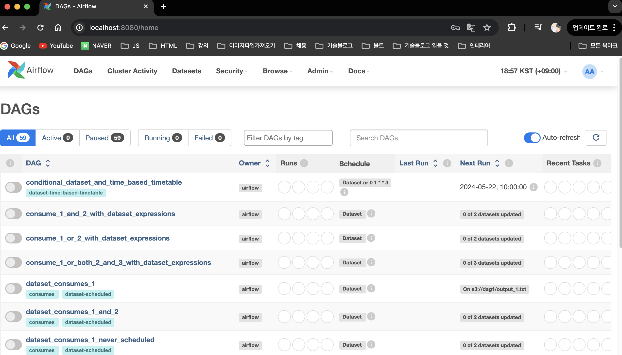 이제 아래 명령어로 Airflow를 시작합니다.