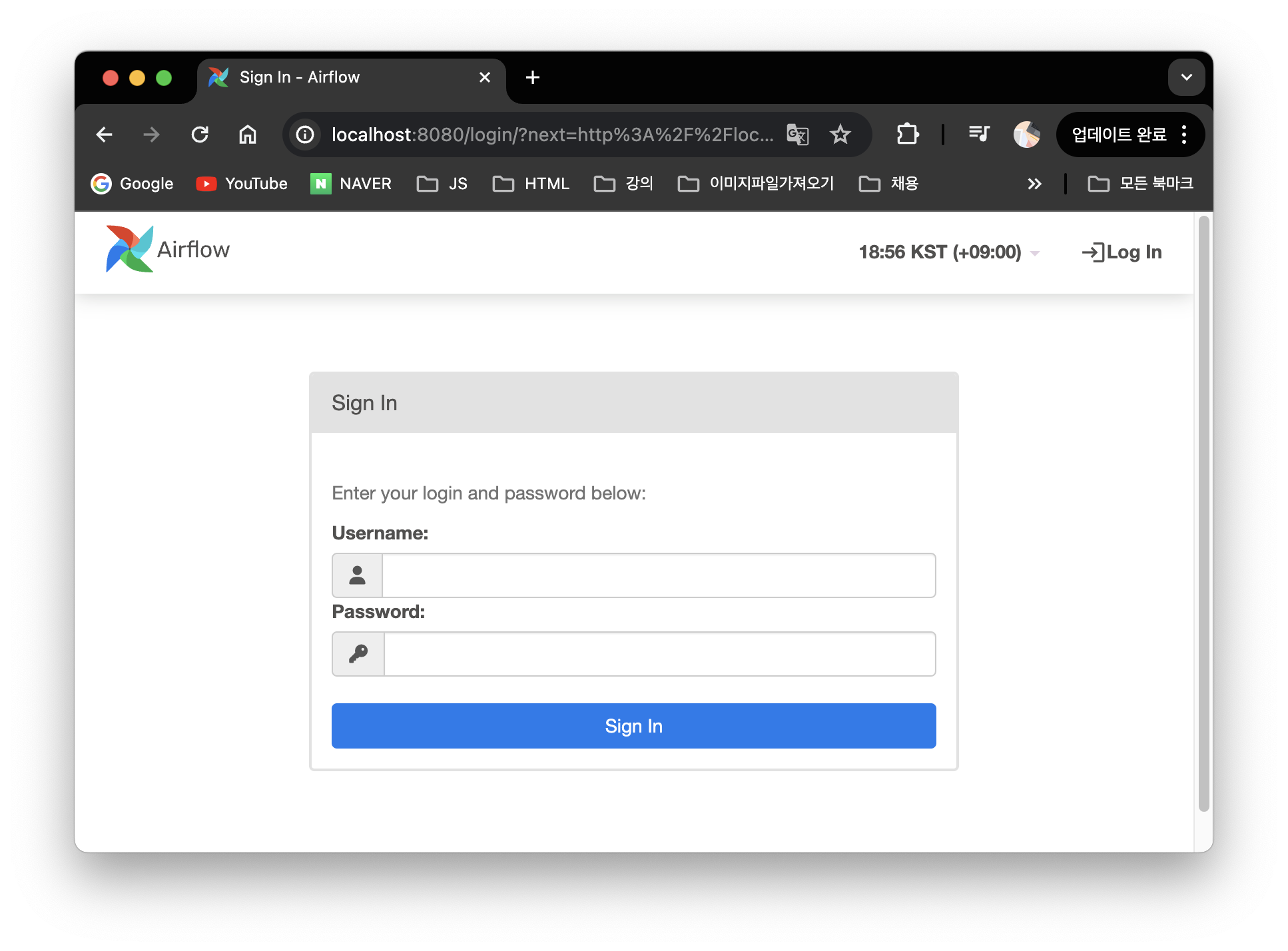 이후 생성된 계정 아이디 : airflow , 비밀번호 : airflow 가 만들어집니다.
