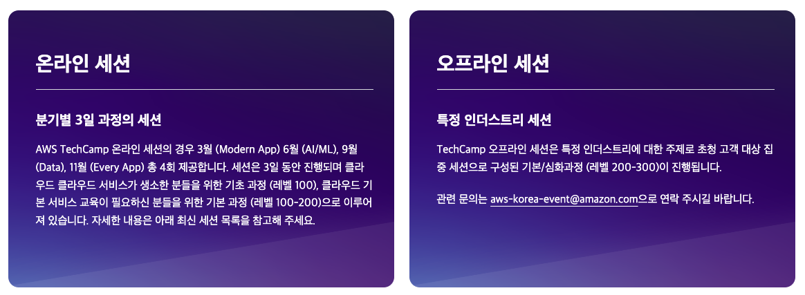 최근 AWS Builders Korea Program이 새롭게 변화한 AWS TechCamp에 참여하면서 느낀 점을 공유하고자 한다.