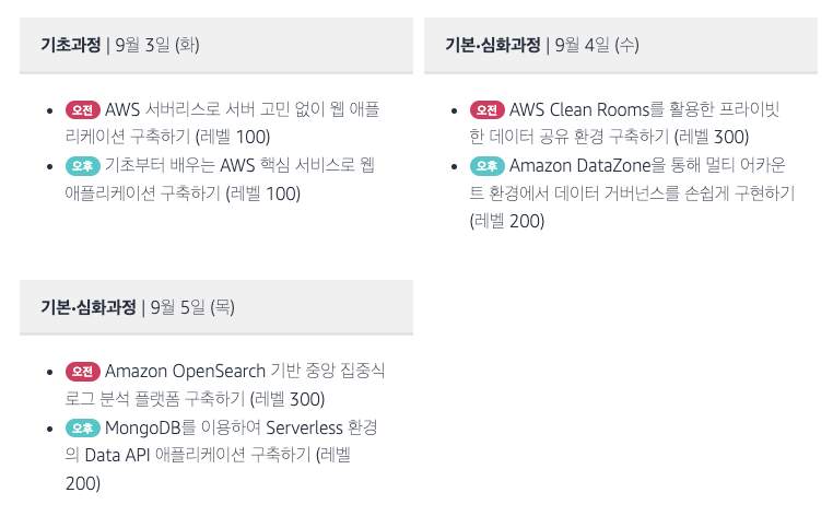 매년 3월(Modern App), 6월(AI/ML), 9월(Data), 11월(Every App)을 주제로 진행된다.