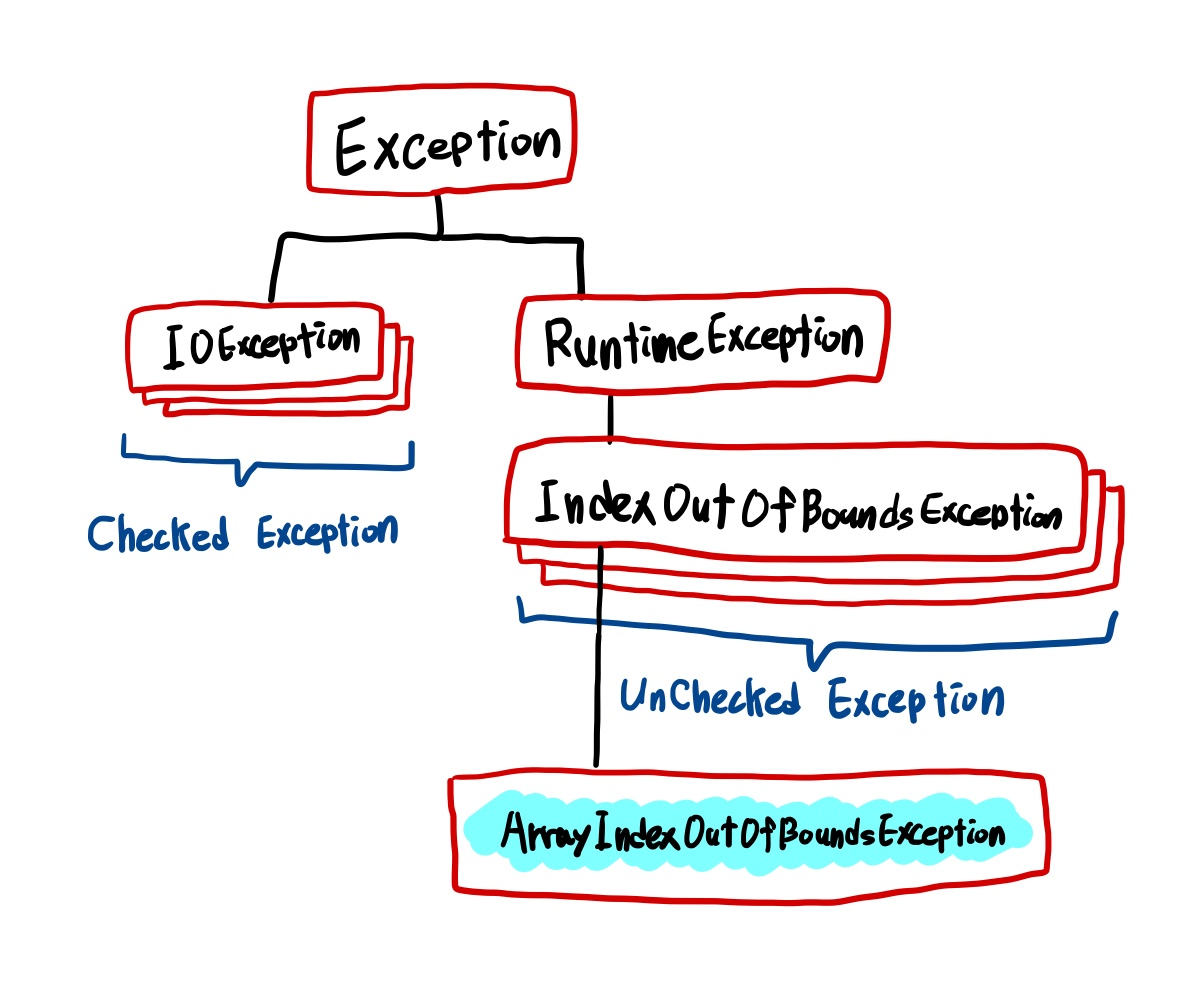 - ex) ArrayIndexOutOfBoundsException, IndexOutOfBoundException, NullPointerException ...