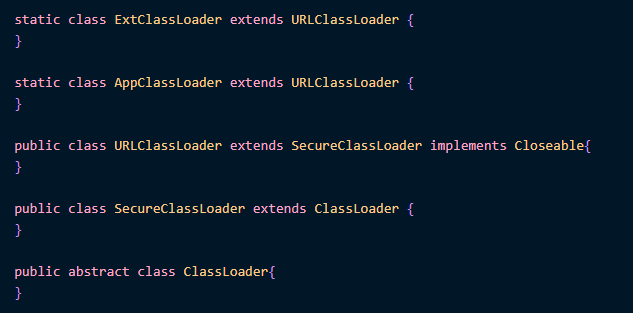 나머지 클래스로더는 URLClassLoader, SecureClassLoader라는 객체를 상속받아서 구현된다.