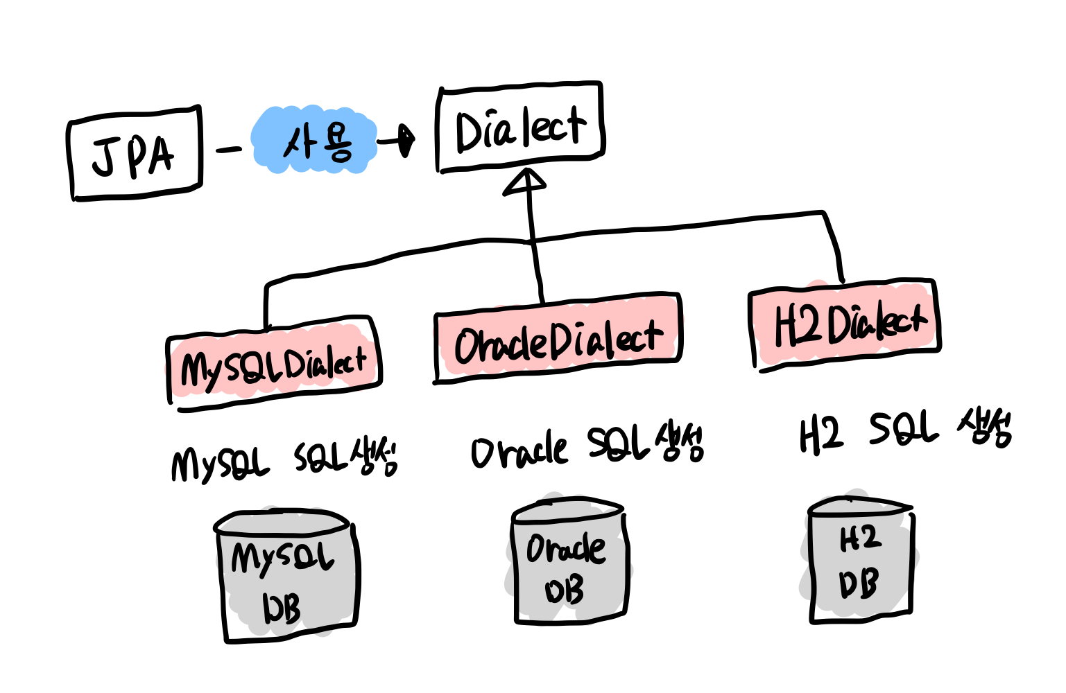 JPA는 애플리케이션과 데이터베이스 사이에 추상화된 데이터 접근 계층을 제공해서 DB에 종속되지 않도록 한다.