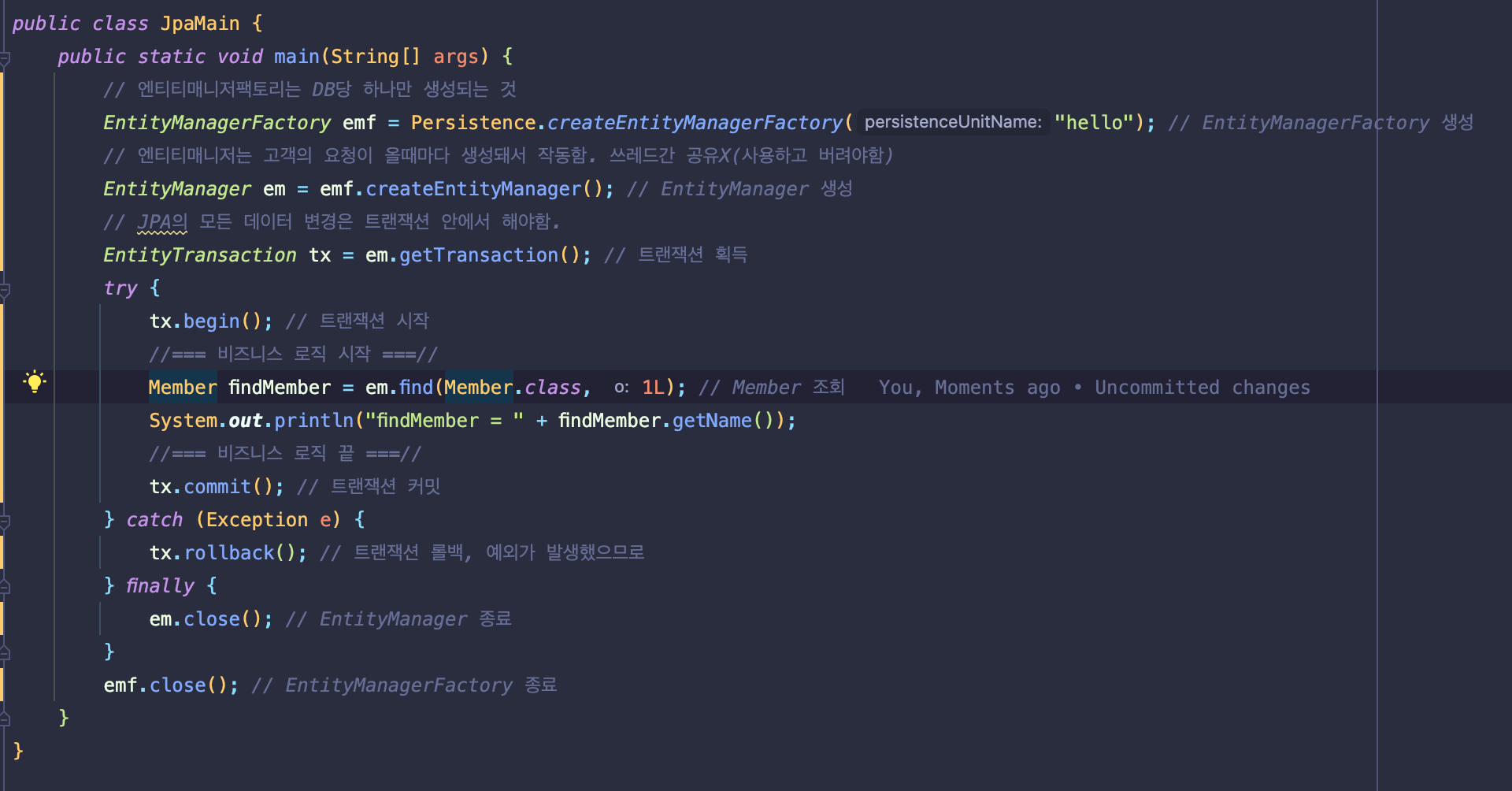 - EntityManager를 사용해서 엔티티를 DB에 CRUD 할 수 있다.