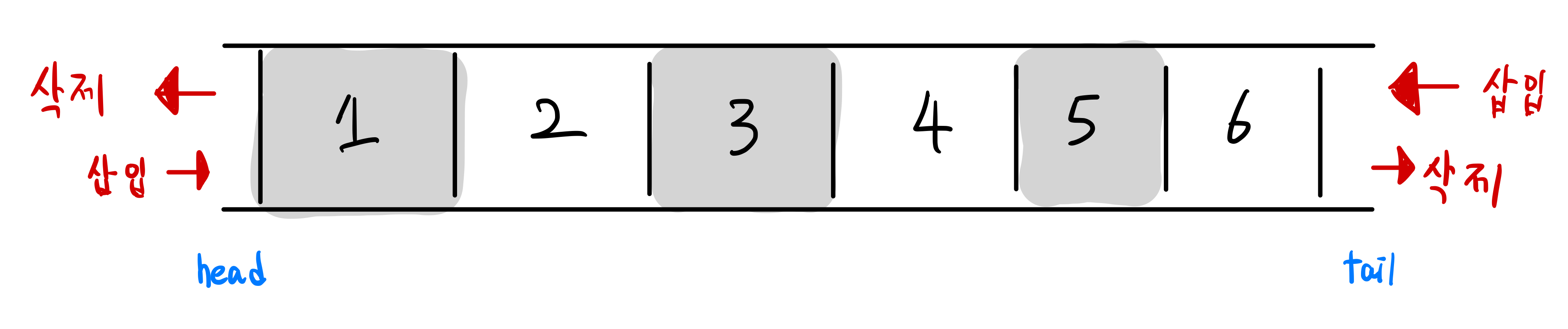 Queue는 한쪽 방향으로만 삽입과 삭제가 가능하지만 Deque는 Double-ended Queue라는 의미로 양쪽에서 가능하다.