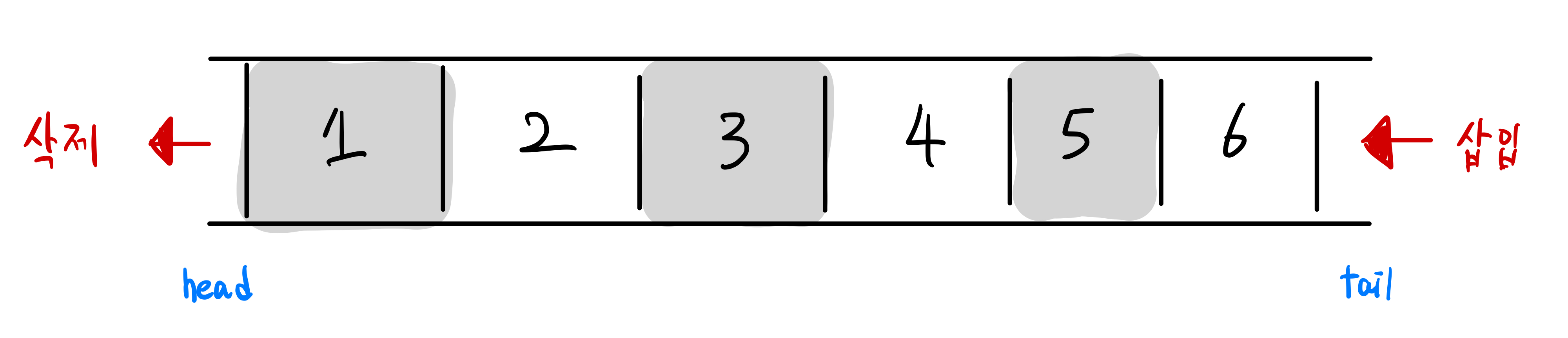 가장 앞쪽은 head(헤드)이고, 가장 뒷쪽은 tail(꼬리)라고 부른다.