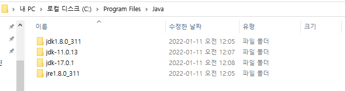 위에서부터 Java 17, 11, 8 버전이다.