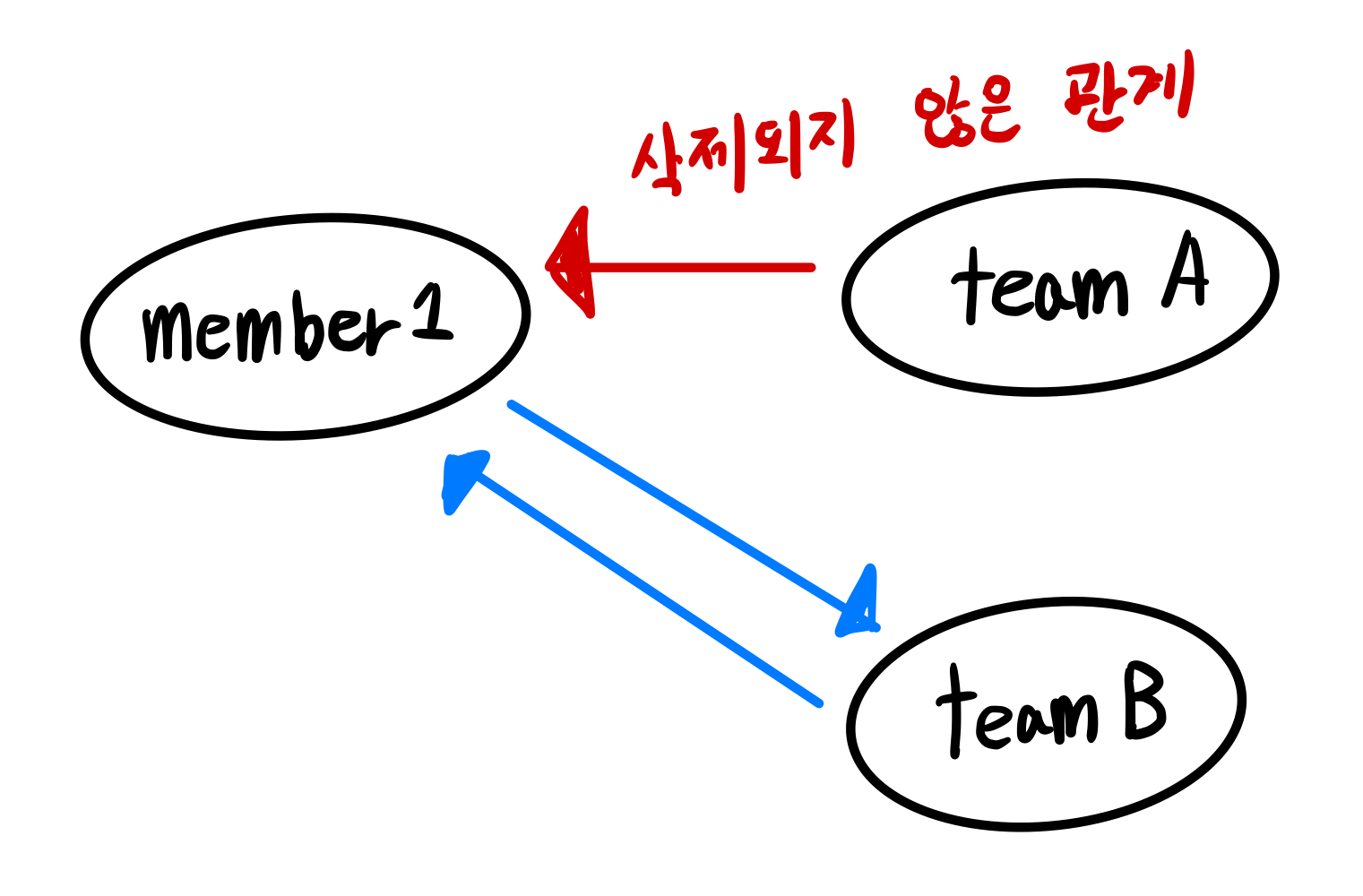 이렇기에 teamB로 변경할 때 teamA -> member1 관계를 제거해야한다.
