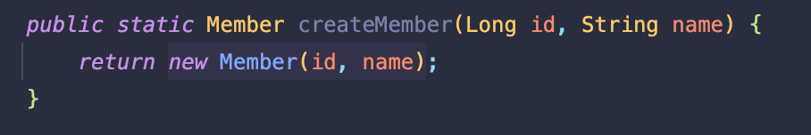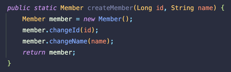 엔티티 상황에 따라서 이 중 한가지를 선택하고, 파라미터에 객체 생성에 필요한 데이터를 다 넘기는 방법을 사용한다.