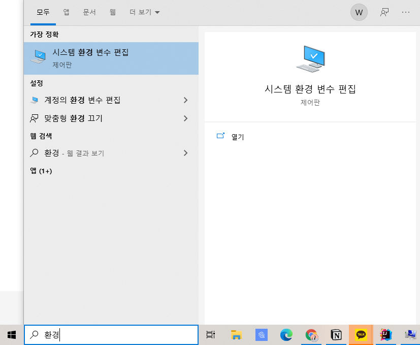 1. 시스템 환경 변수 편집을 들어간다.