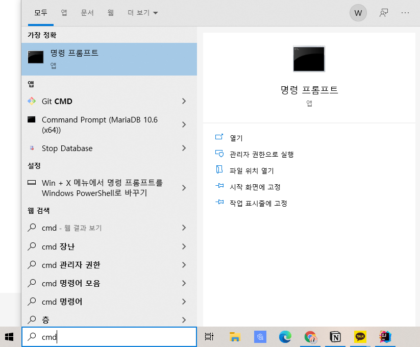 6. cmd를 켜서 확인해본다.