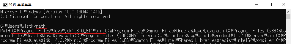 7. path를 입력하면 환경변수 path 값을 확인할 수 있는데 위에서 추가한 겨올가 있는지 확인한다.