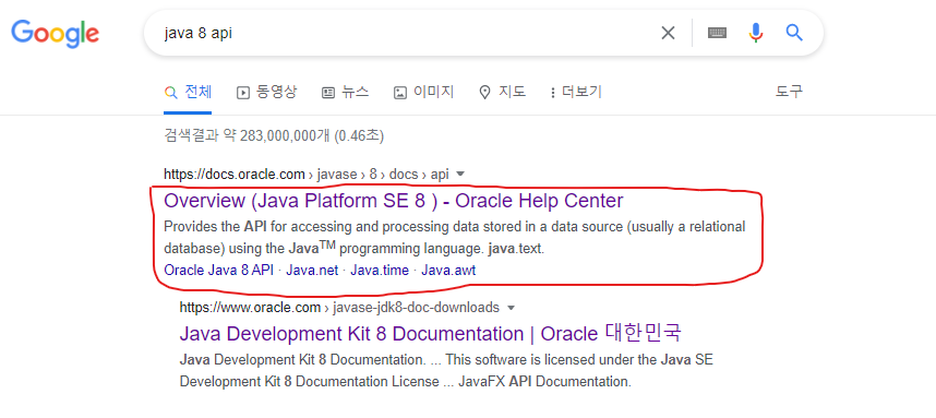 보통 구글에 Java 버전 api를 치면 바로 다음과 같이 나온다.