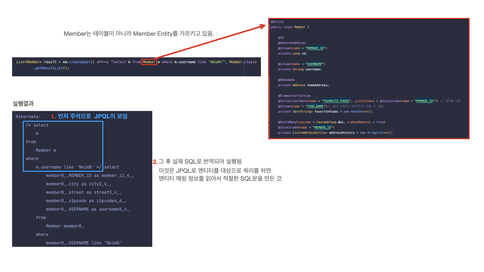 JPQL은 엔티티 객체를 대상으로 쿼리를 수행함.