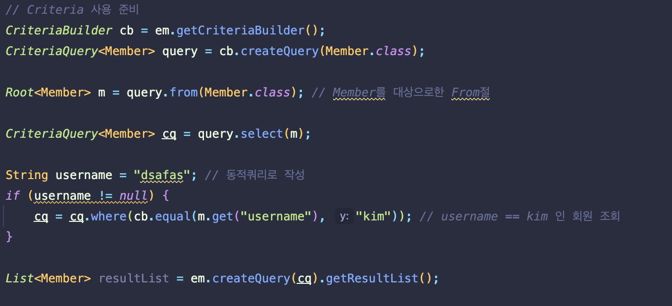 하지만 너무 복잡하고 실용성이 없어서 굳이 사용한다면 이것 대신에 QueryDSL 사용을 권장한다.