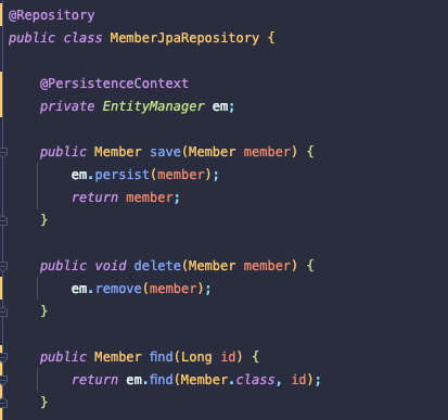 @PersistenceContext로 스프링 컨테이너가 엔티티 매니저를 가져와준다.