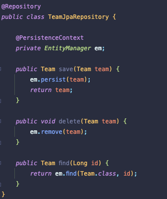 아까전에ember에 대한 데이터 접근 메서드를 만들었는데 이번에는 Team에 관한 것이다.
